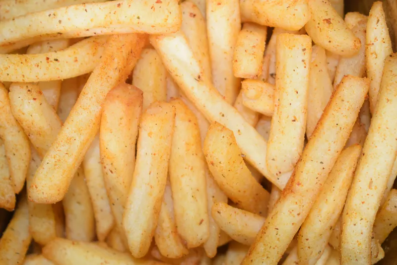 Cerdo desmenuzado agridulce, lactonesa ajo, lechuga, pico de gallo y ají verde apanado frito relleno de queso, acompañado de papitas fritas Pan: Shokupan